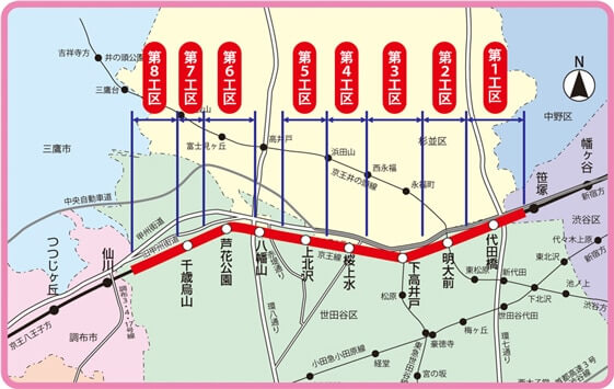 以下、京王電鉄さんのサイトより、工区の案内図です。