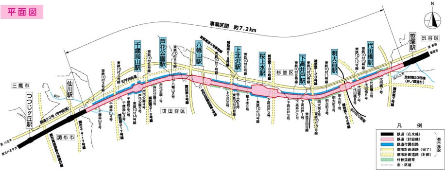 以下、京王電鉄さんのサイトより、連続立体交差事業の平面図です。