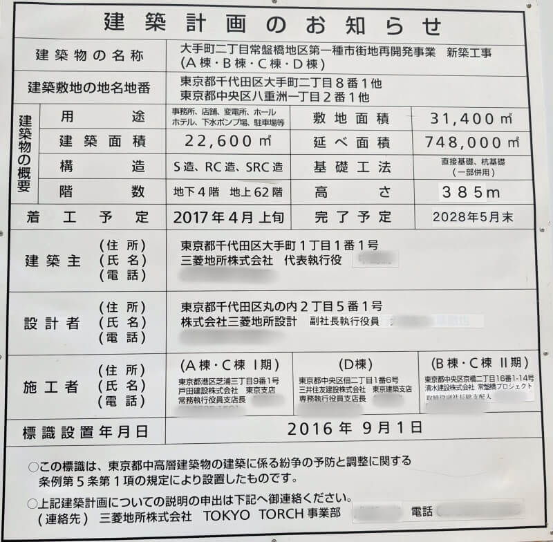 現地の建築計画のお知らせを撮影しました。標識設置年は2016年9月1日という事で、設置されてから9年経つのですねぇ。