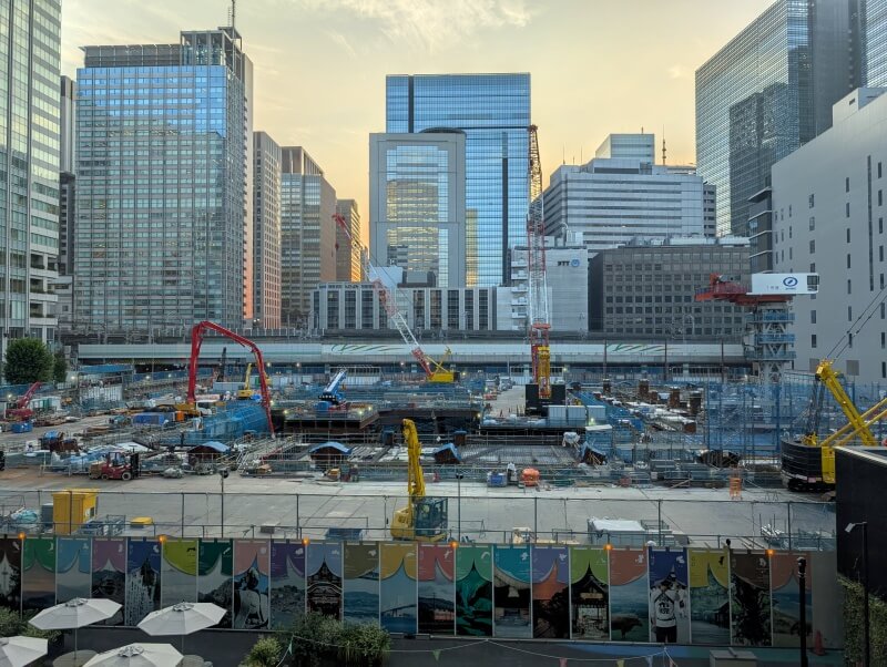 東京駅側を見た様子です。1号機以外のタワークレーンは見えていませんでしたが、この景色が変わるのも時間の問題でしょう。