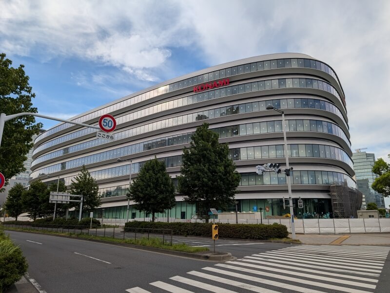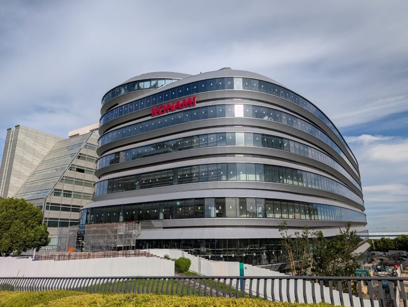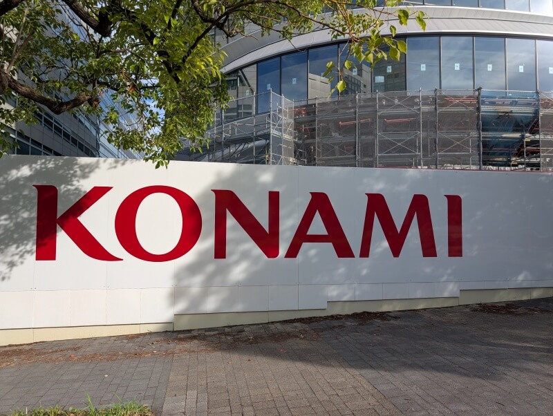 現地に設置されていた、建設工事用のフラットパネルにKONAMIのロゴが掲示されていました。