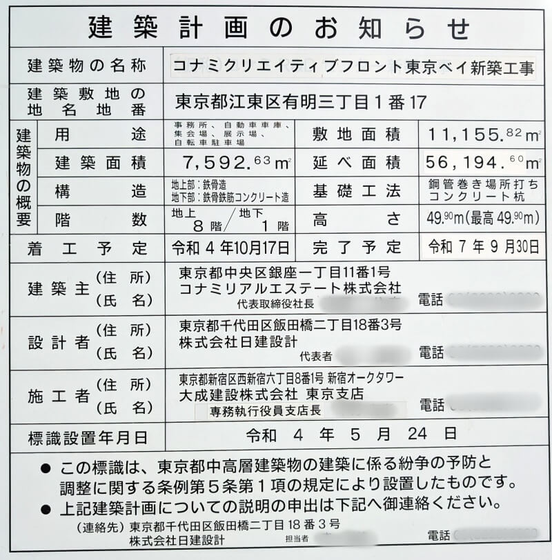 名称:コナミクリエイティブフロント東京ベイ新築計画