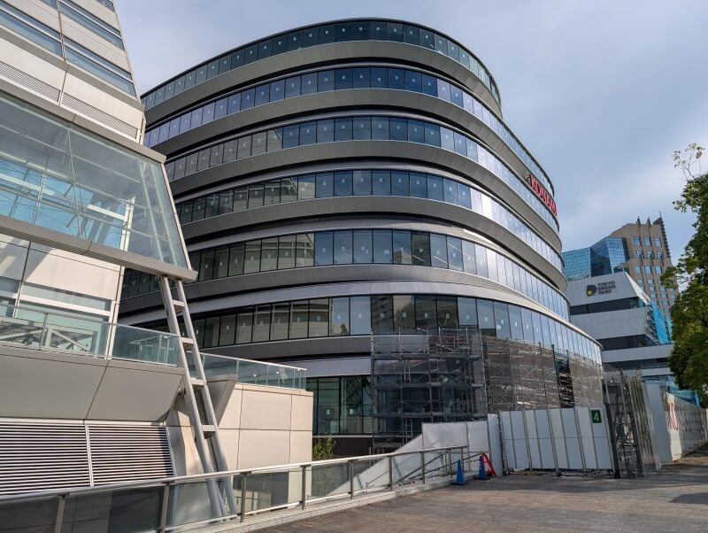 「東京ドリームパーク」の北側で施行中の、8階49m「コナミクリエイティブフロント東京ベイ」の様子です。こちらは次世代研究開発拠点となり、eスポーツ等のイベントの生放送や動画配信にも対応したスタジオも開業予定だそうです。