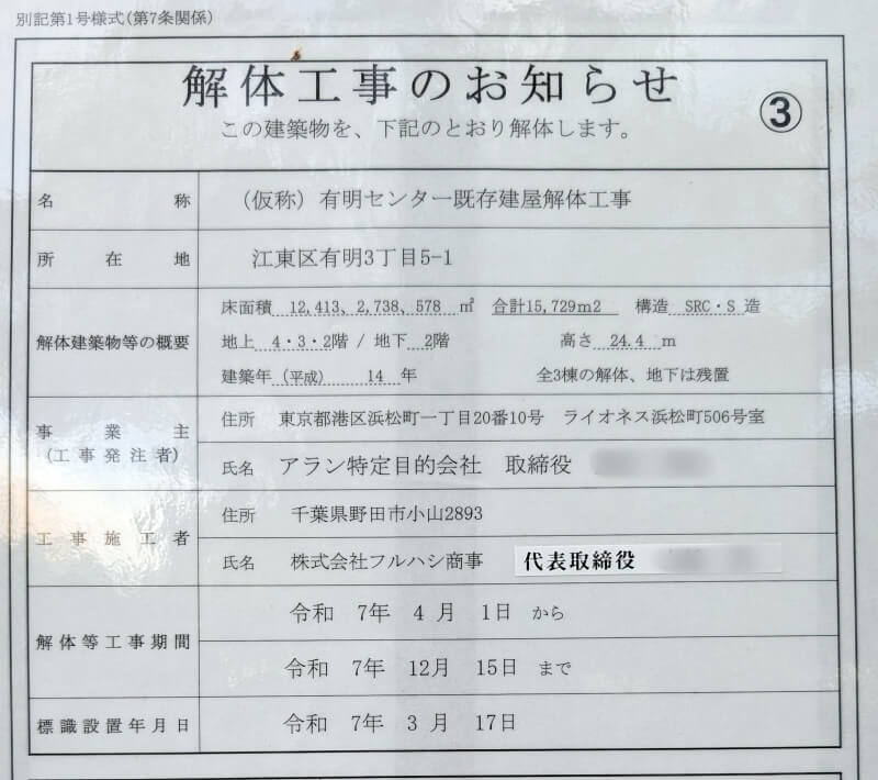 現地に掲示されていた、解体工事のお知らせです。