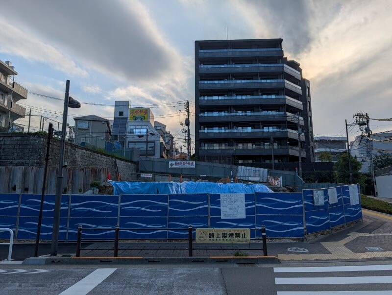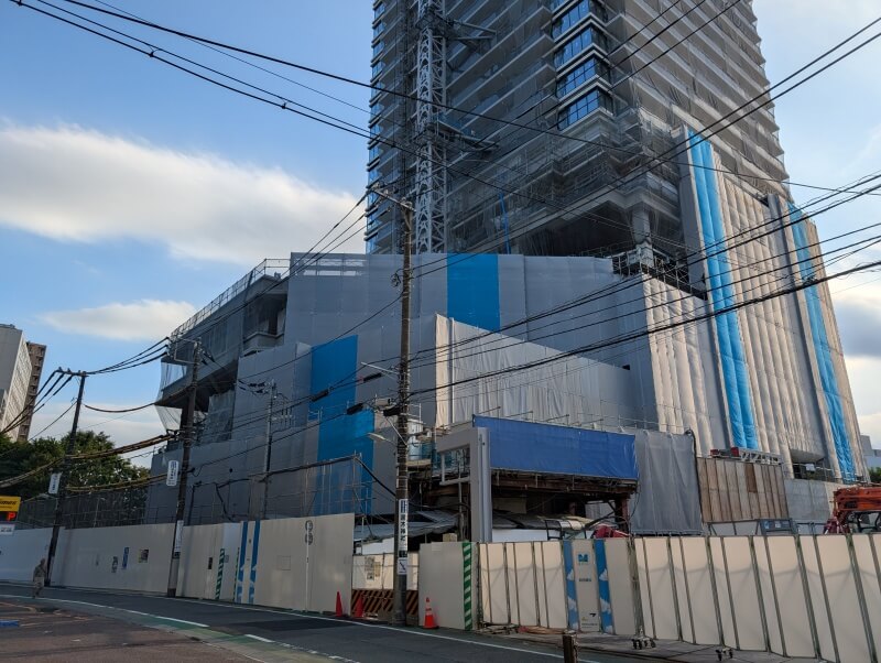 今まで「大崎駅西口F南地区第一種市街地再開発事業」を撮影してた、「品川区立大崎図書館」跡地に向かう坂道は、株式会社寺岡精工さんの事務所の工事で、建物が見えなくなっていました。