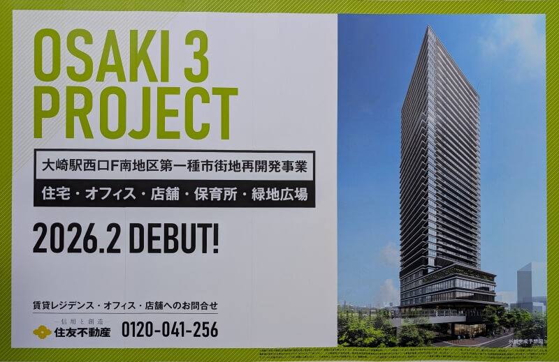 現地には、「OSAKI 3 PROJECT」と掲示されていました。大崎三丁目だから、「OSAKI 3 PROJECT」なのかもしれません。掲示された内容を見ると、こちらは賃貸レジデンスになるのでしょうか。