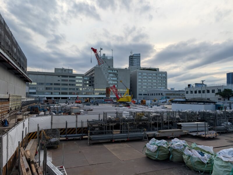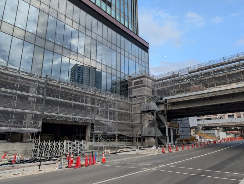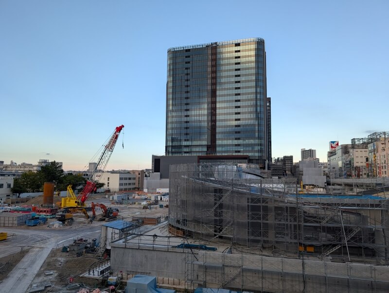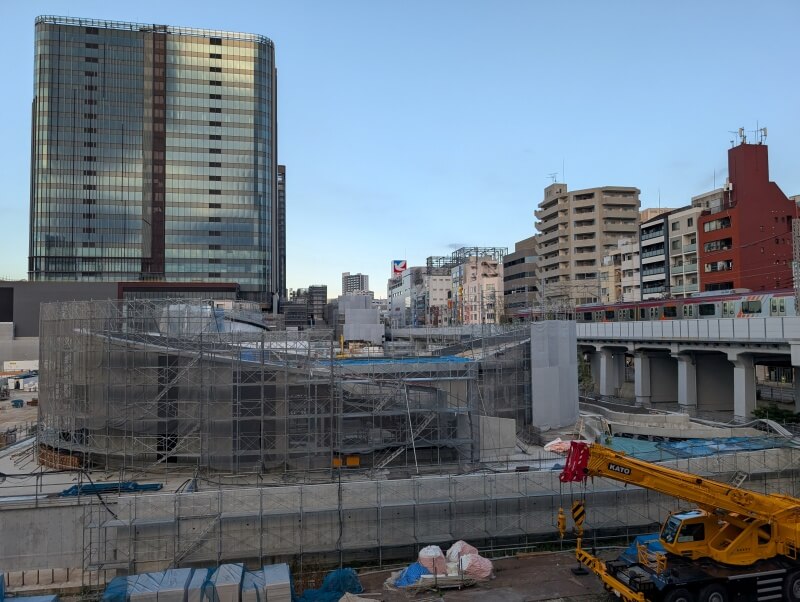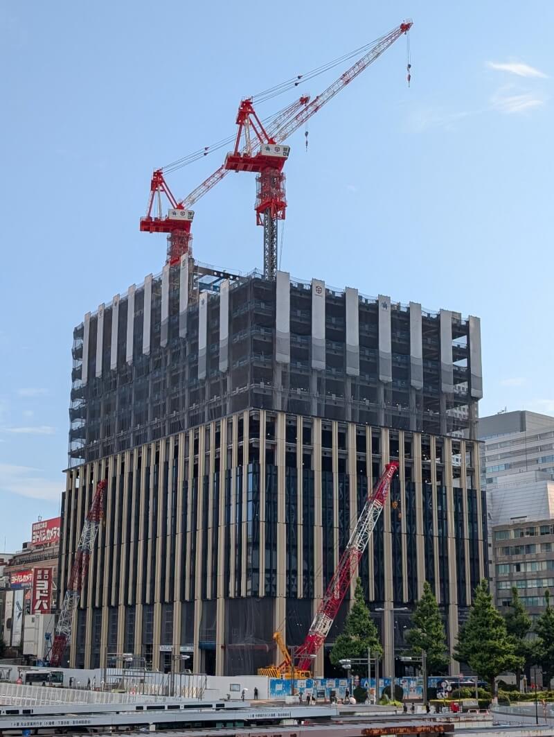 施工中の、「大井町トラックス ビジネスタワー」を見た様子です。