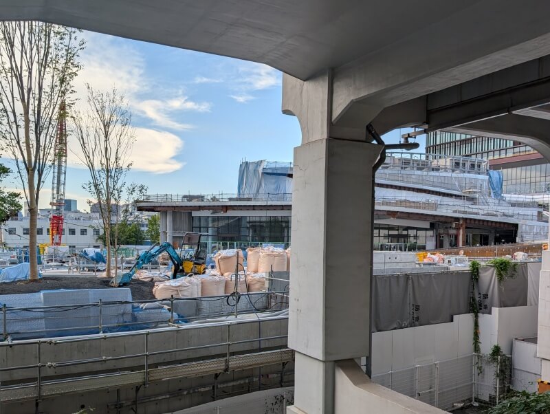 大井町線側を見た様子です。写真の手前では、広場の「TRACKS PARK」を施工中です。