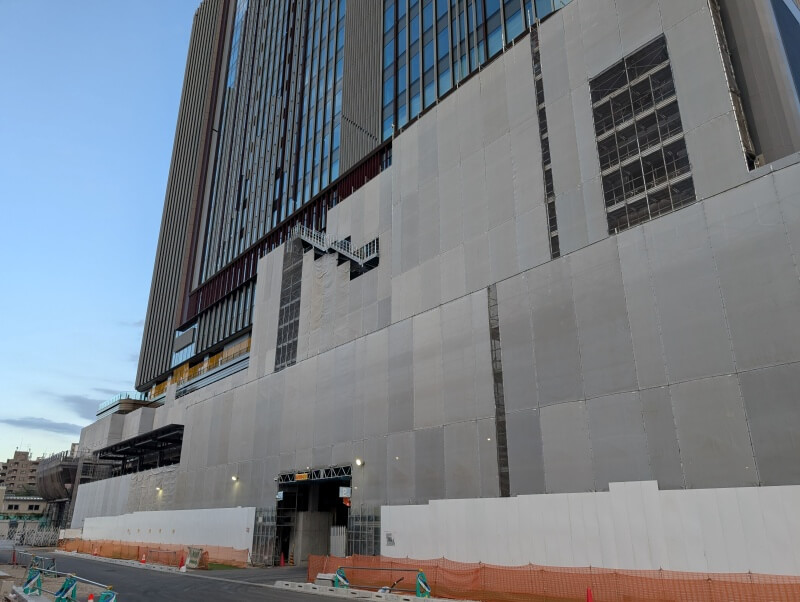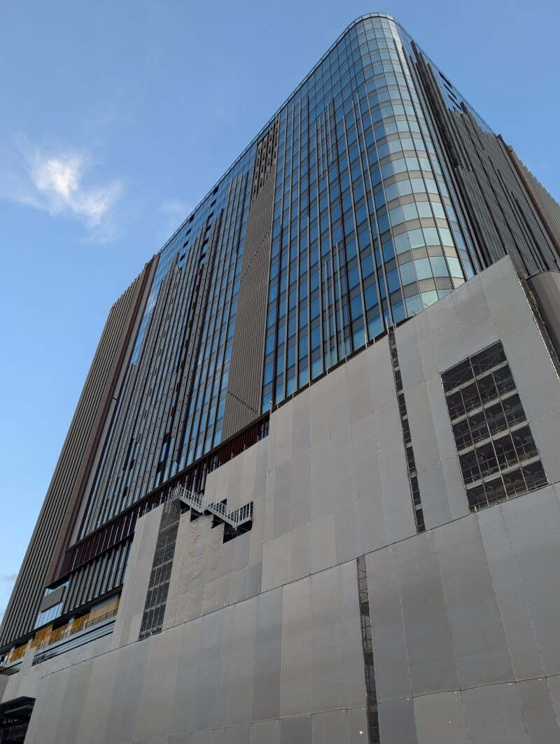 建物高層階の外観は完成しており、後は低層階の整備をしている感じでした。開業が楽しみです。