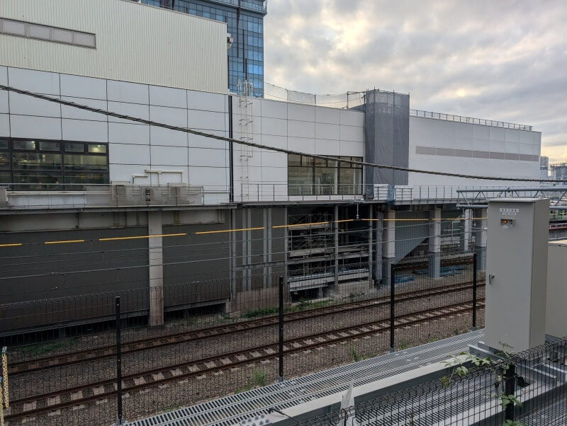 さらに線路沿いを北側に移動し、建物の北側を撮影した様子です。