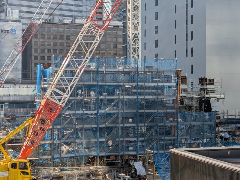 日本一高いオフィスビルが建つので、基礎となる太い鉄骨が、最初に出現するのだと思いました。しかし、予想とは違い、北東側から徐々に低層階の鉄骨を施工していました。