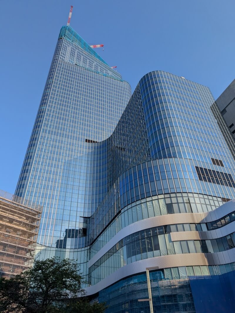 まだ最高階付近のカーテンウォールの設置等残っていますが、完成が待ち遠しいです。