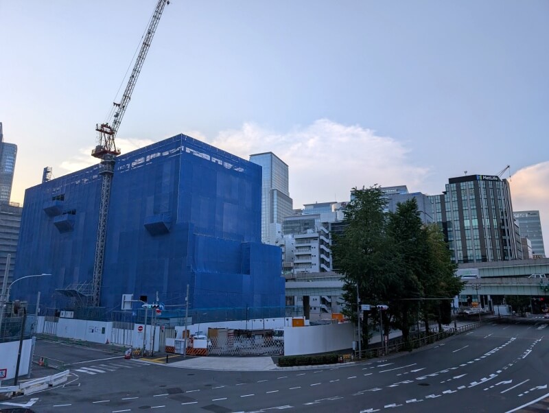 日本橋北詰交差点から、再開発の敷地を見た様子です。