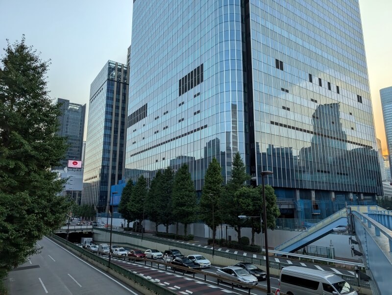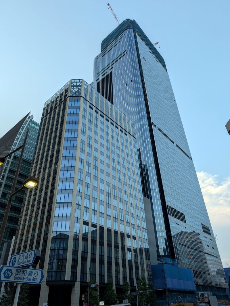 色々日本橋界隈を散策し、少し日が暮れた時間になってから、昭和通り沿いの江戸橋近くから、高層階を見上げた様子です。