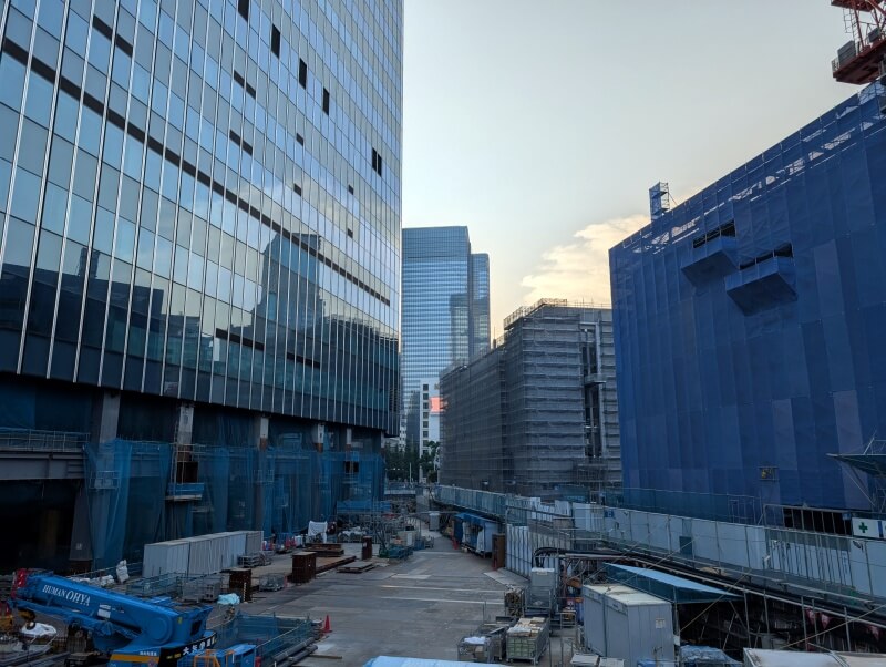 C街区とB街区の間を見た様子です。この辺は、C街区からB街区に繋がる歩行者デッキが出来る予定です。