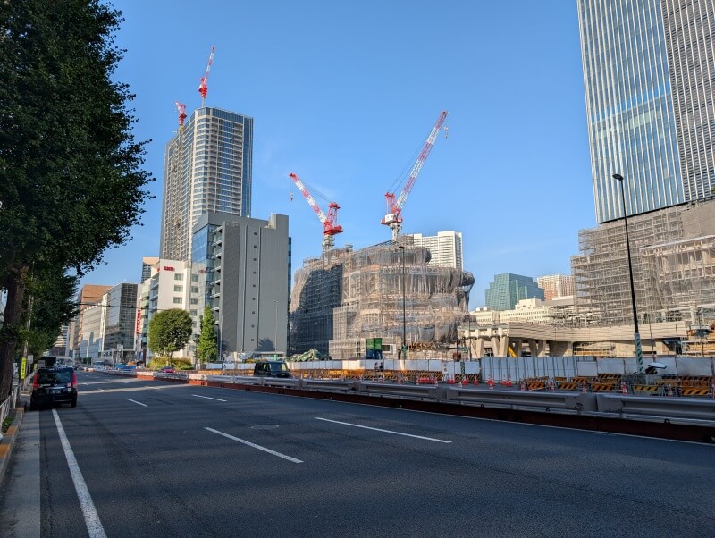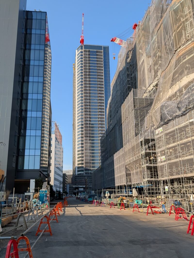 第一京浜を北側に進み、施工中の「高輪ゲートウェイシティレジデンス」を見た様子です。