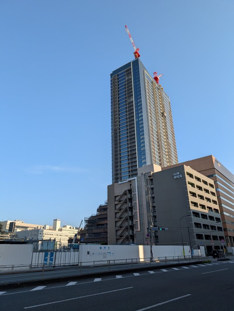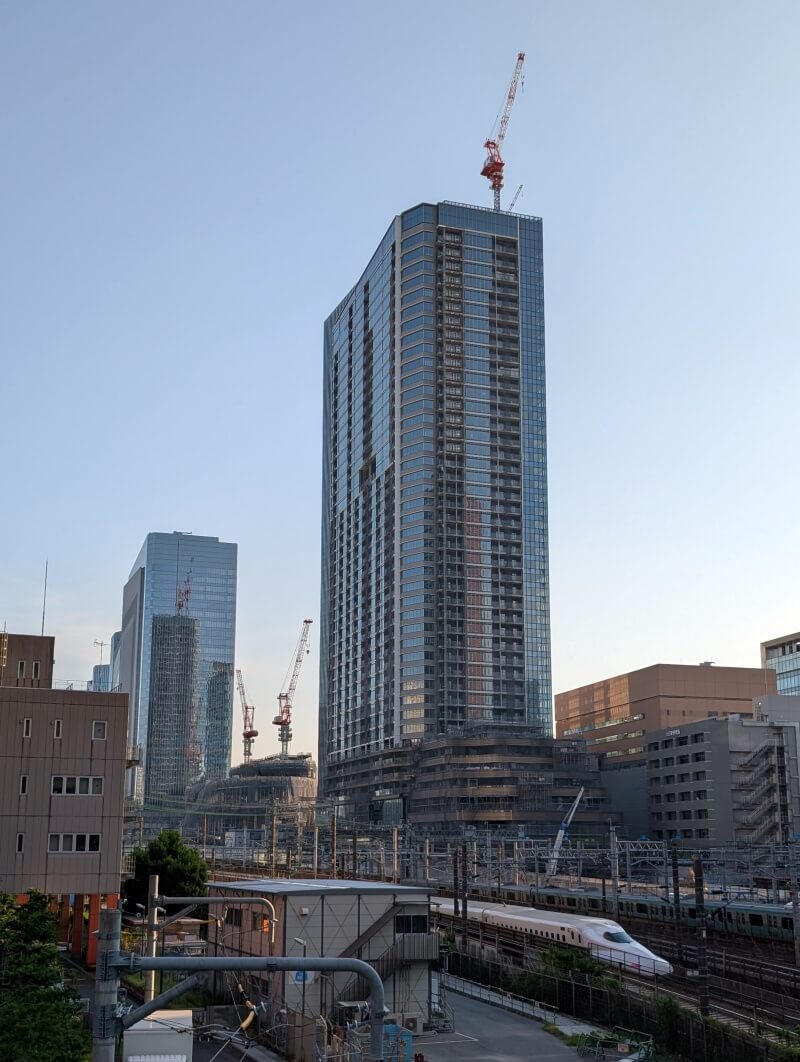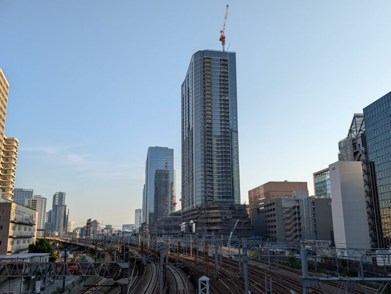 札の辻橋の上から見た、「高輪ゲートウェイシティレジデンス」の様子です。
