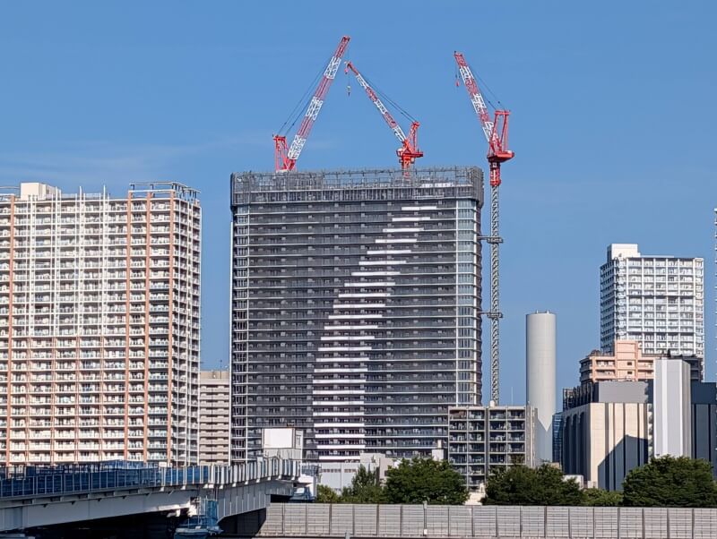 東品川海上公園から、天王洲運河越しに解体工事中の建物を見た様子です。