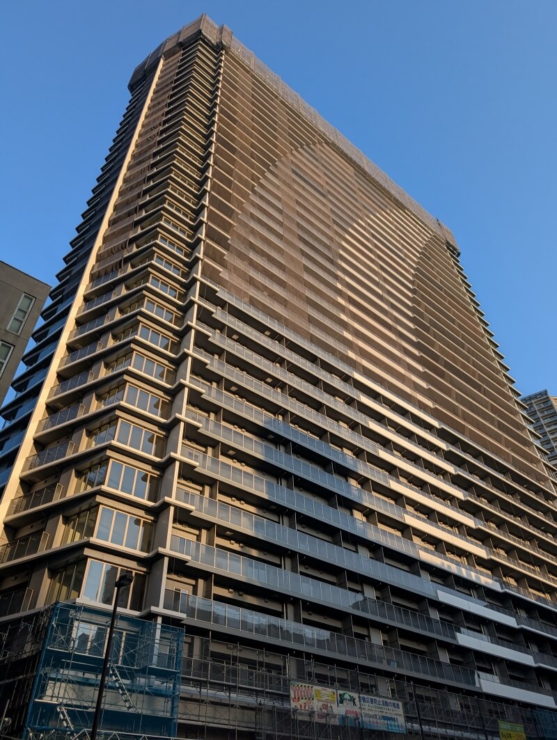 港南三丁目で建設中の、34階119m「リビオタワー品川」((仮称)港区港南三丁目7番プロジェクト)の様子です。階数を数えてみたら、そろそろ上棟しそうな感じでした。