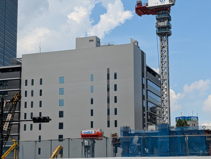 タワークレーンが出現し、定期的にチェックしている現場です。1基目のタワークレーンが出現し、地上部の鉄骨の施工が始まっていたので、頻繁に見に行くようにしています。地上部の鉄骨の施工方式は、メガトラス構造かと思っていましたが、日経新聞さんの記事によると、「ダイヤグリッド架構」方式で施工されているそうです。