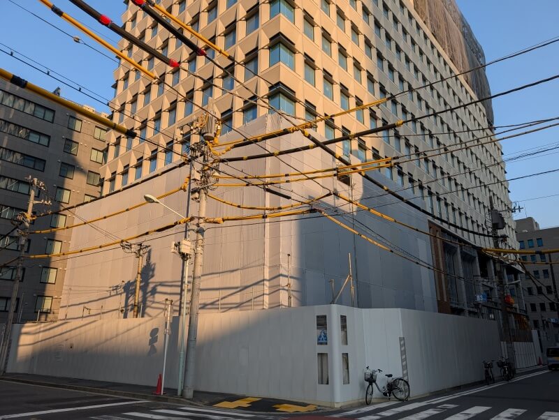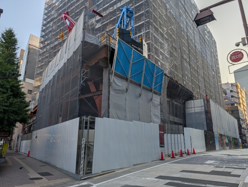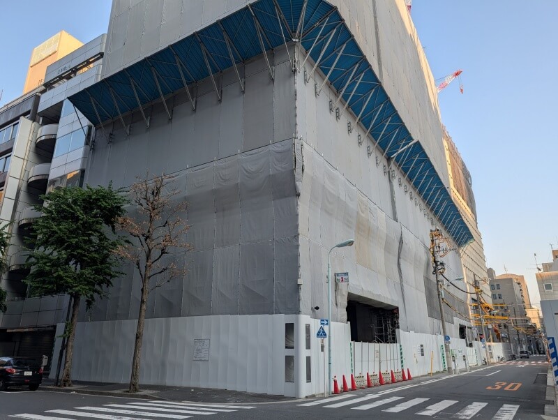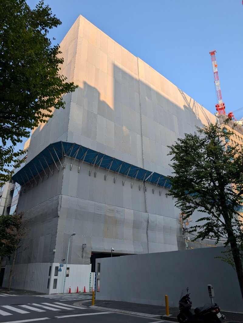昭和通り沿いの北側から、再開発の敷地を見た様子です。