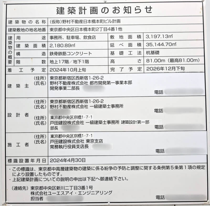 名称:(仮称)野村不動産日本橋本町ビル計画