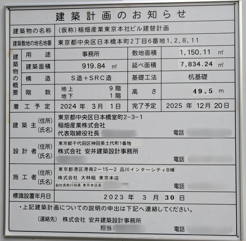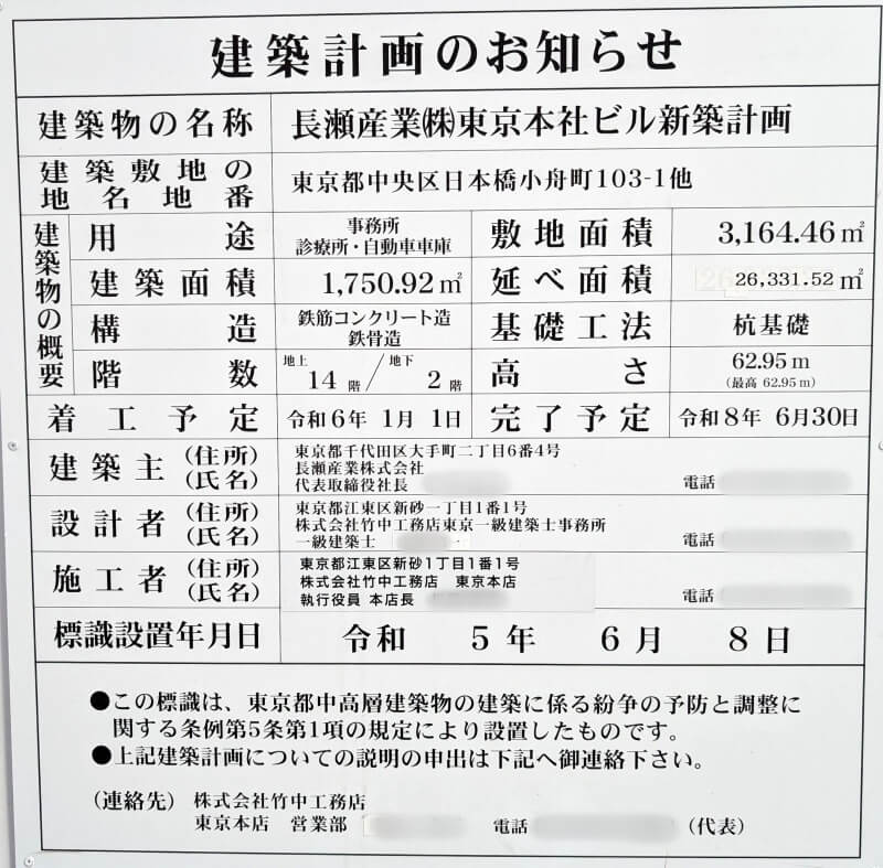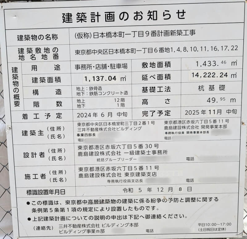 昭和通り沿いの東側でも再開発が進んでいる、17階81m「(仮称)野村不動産日本橋本町ビル計画」の様子です。その他周辺の、気になる建替え工事の様子も撮影しました。