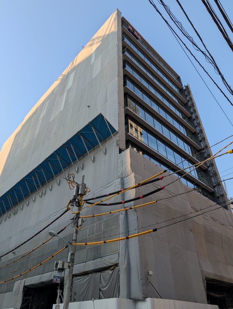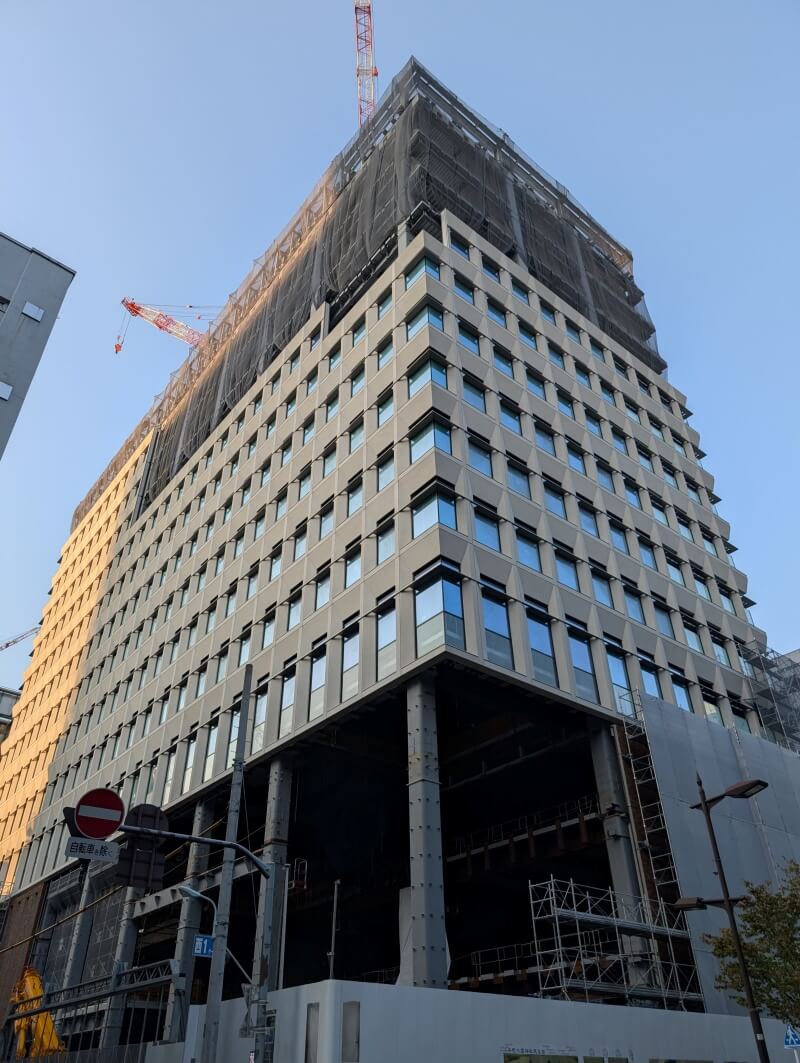 昭和通り沿いを南側に進んだ所で建設中の、12階49m「日本橋本町M-SQUARE」((仮称)日本橋本町一丁目9番計画新築工事)の様子です。
