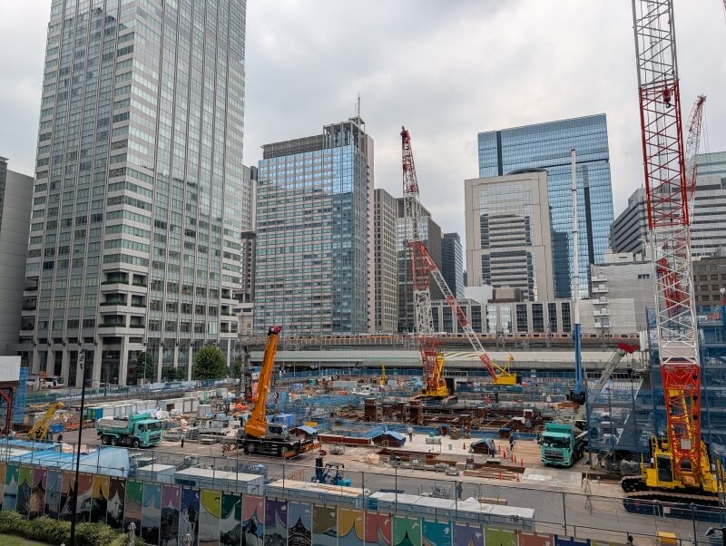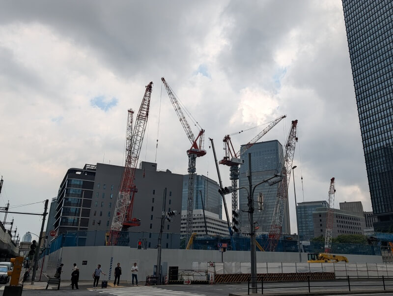 東京駅の日本橋口側から、再開発の敷地を見た様子です。