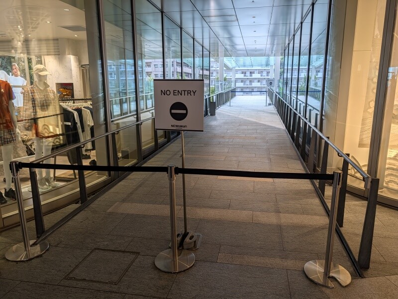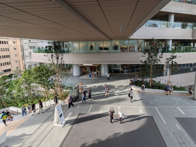 高輪辻広場から登って行き、「NEWoMan高輪」の入り口を見た様子です。
