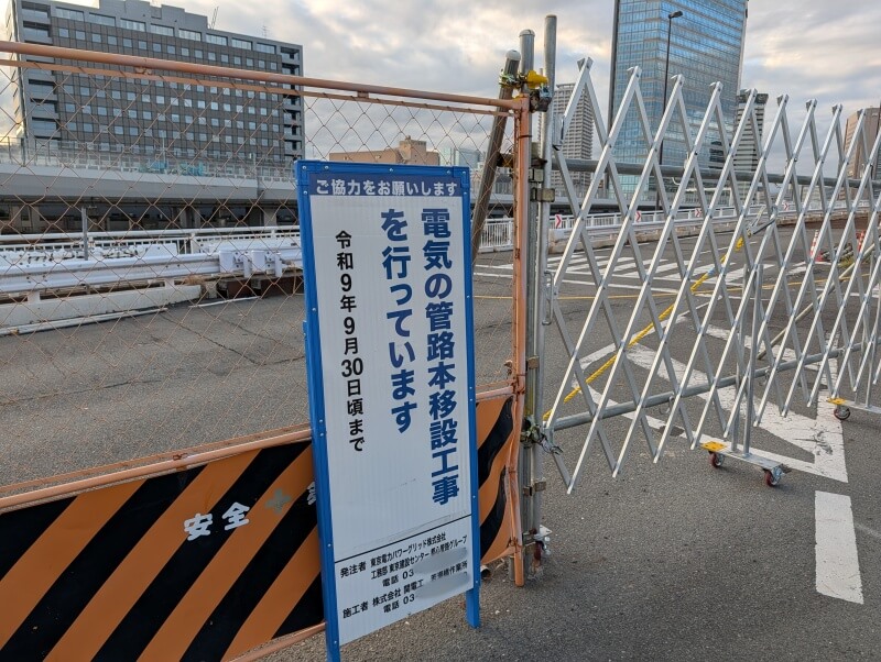 若潮橋は、電気の管路本移設工事が実施中でした。