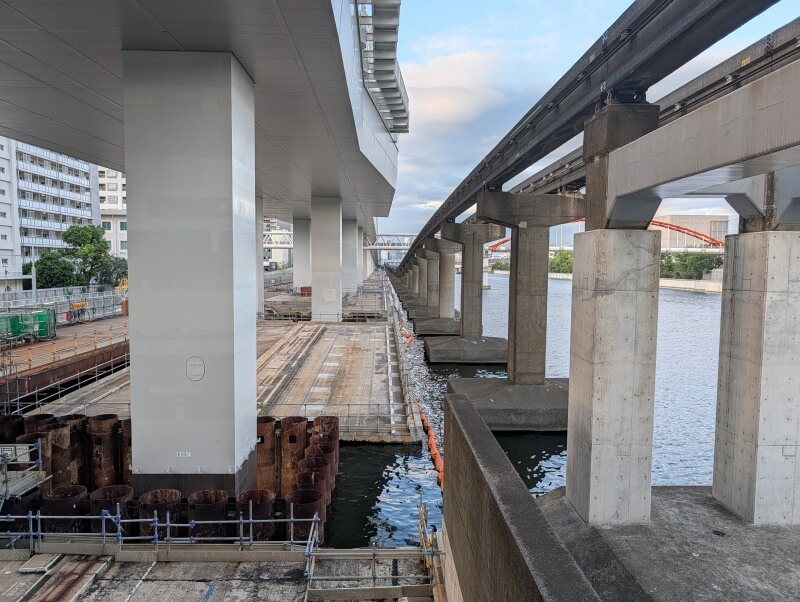 大井北埠頭橋から、仮設の上り路線の北側を見た様子です。