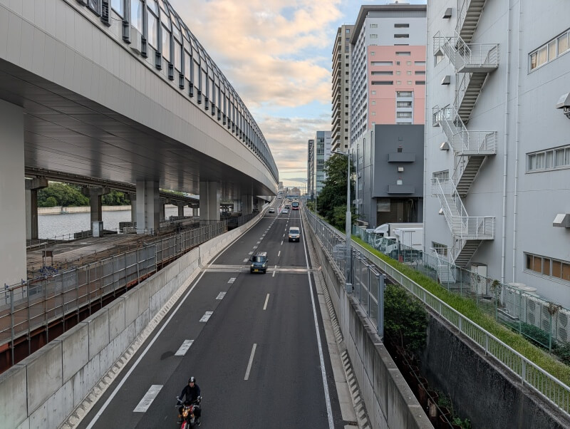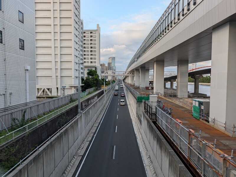 大井北埠頭橋から、南側の「首都高速1号羽田線」の下を見た様子です。