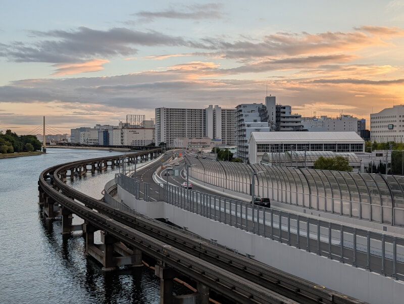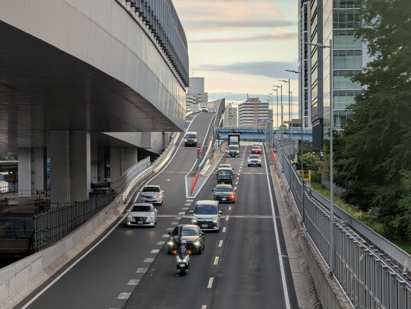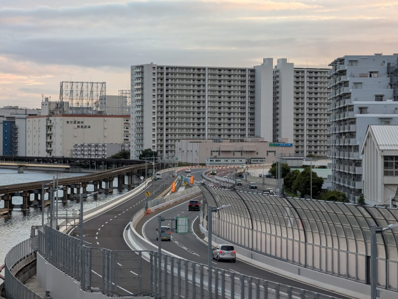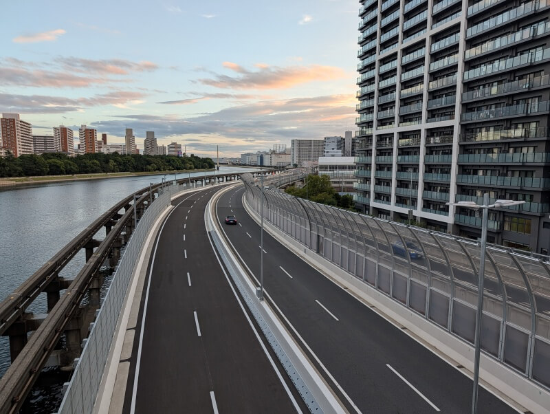 大井北埠頭橋から、「首都高速1号羽田線」の品川シーサイド側を見た様子です。