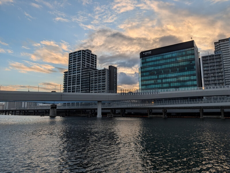 京浜運河沿いを南側に移動し、天王洲アイル側を見た様子です。
