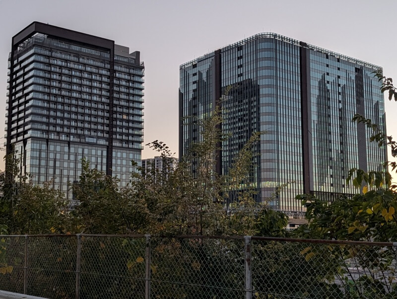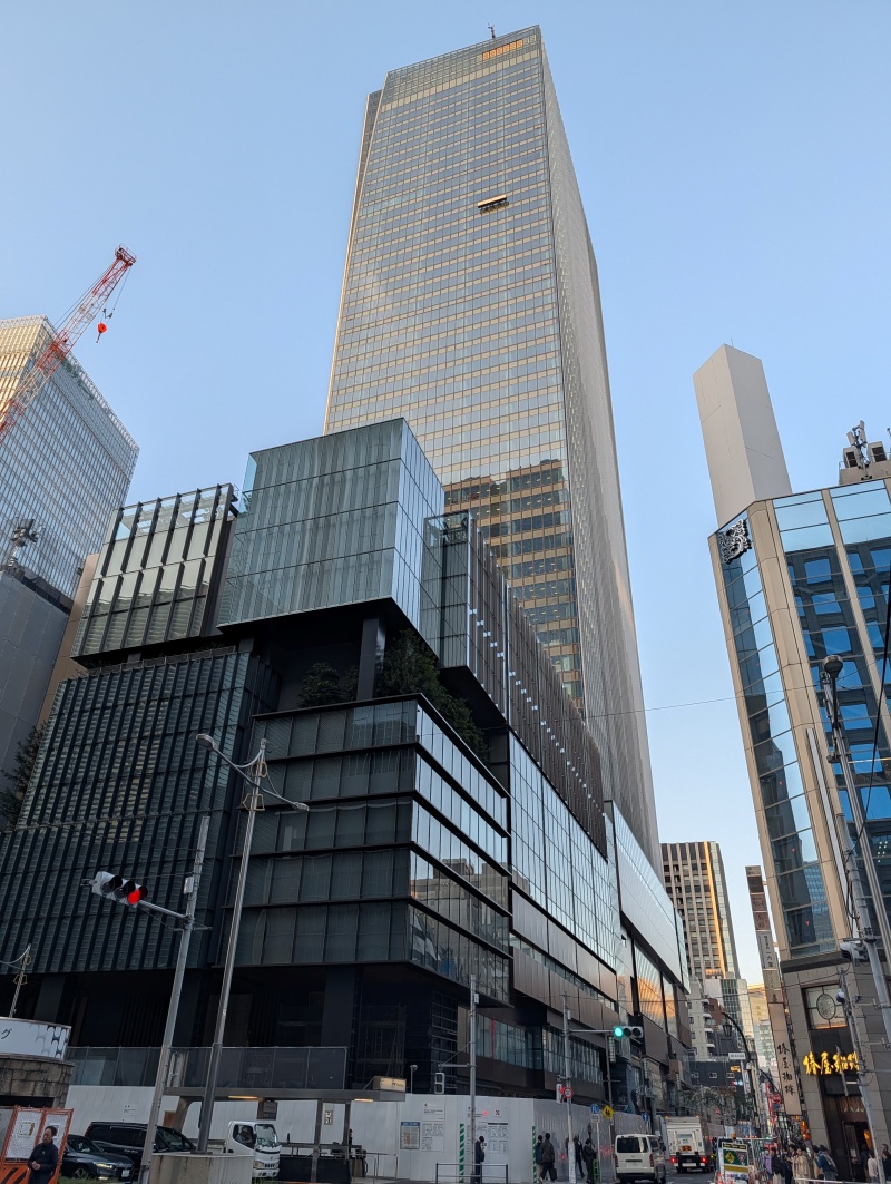 南側の八重洲通り沿いから、「トフロム ヤエス タワー」と「トフロム ヤエス ザ フロント」の建物南側を見た様子です。