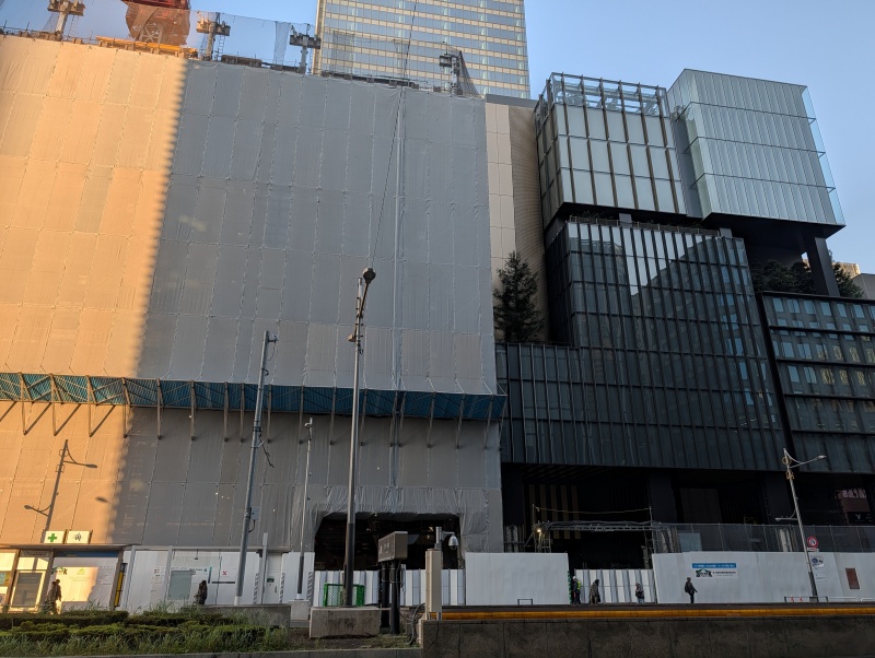 西側の外堀通り沿いから、再開発の敷地低層階を見た様子です。