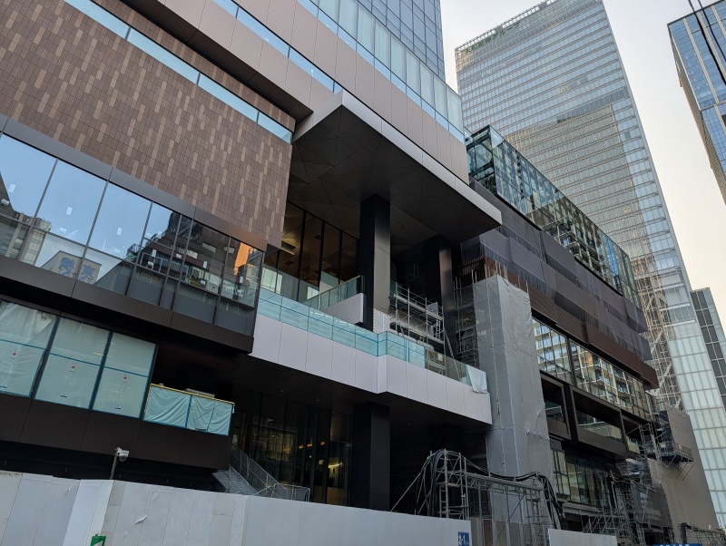 八重洲仲通りとさくら通りの交差点から、再開発の敷地低層階を見た様子です。