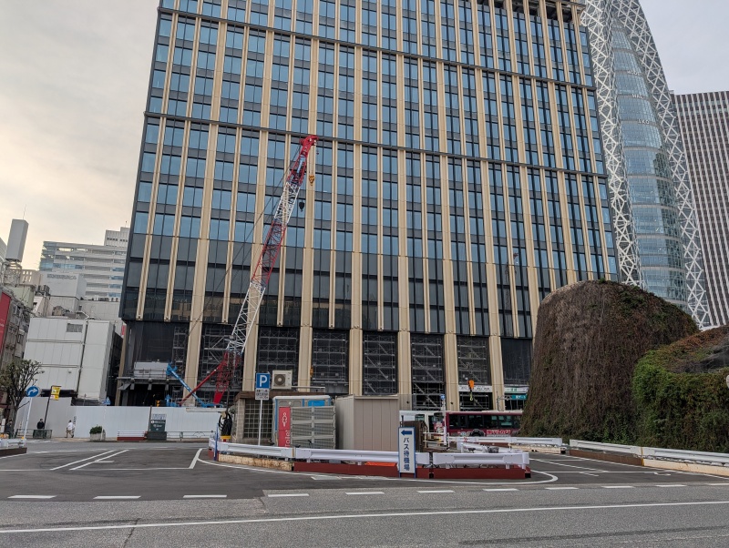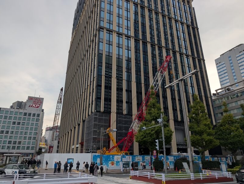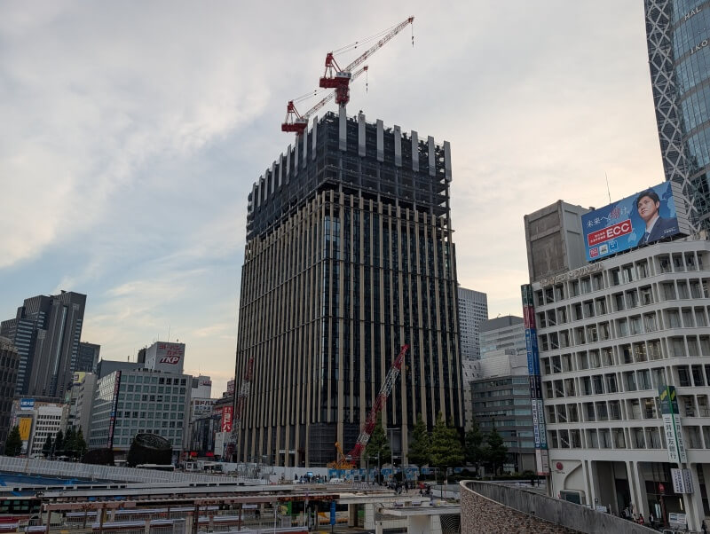 新宿駅西口北側の「小田急ハルク」前の歩行者デッキの上から、再開発の敷地を見た様子です。