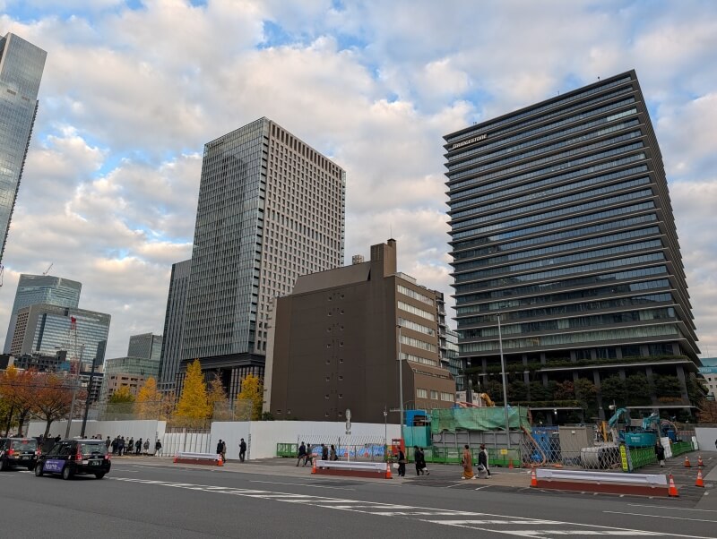 鍛冶橋通りの東側、「東京スクエアガーデン」の傍から、再開発の敷地を見た様子です。