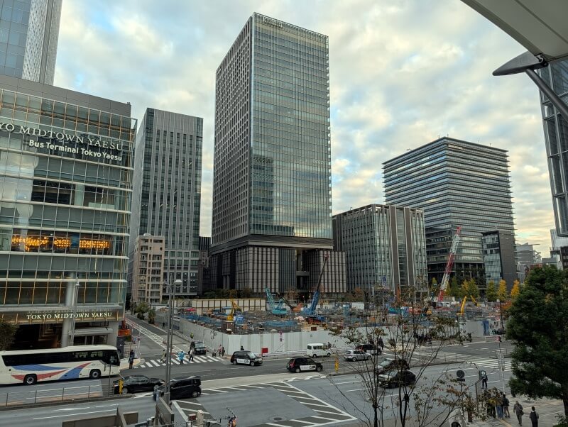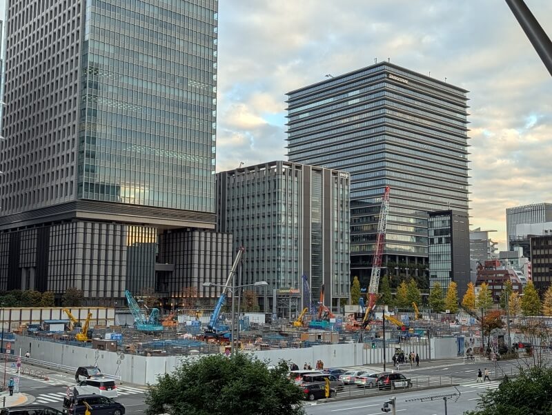東京駅八重洲口のグランルーフから、再開発の敷地を見た様子です。