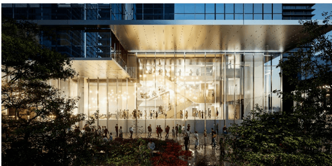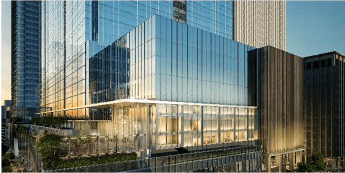 こちらの建物には、高層オフィスフロアに、Hondaが移転してくる予定です。また、敷地の南側には、阪急電鉄が約1300席の劇場をオープンする予定です。劇場では、ミュージカルや演劇・宝塚歌劇・コンサート等が上映される予定です。