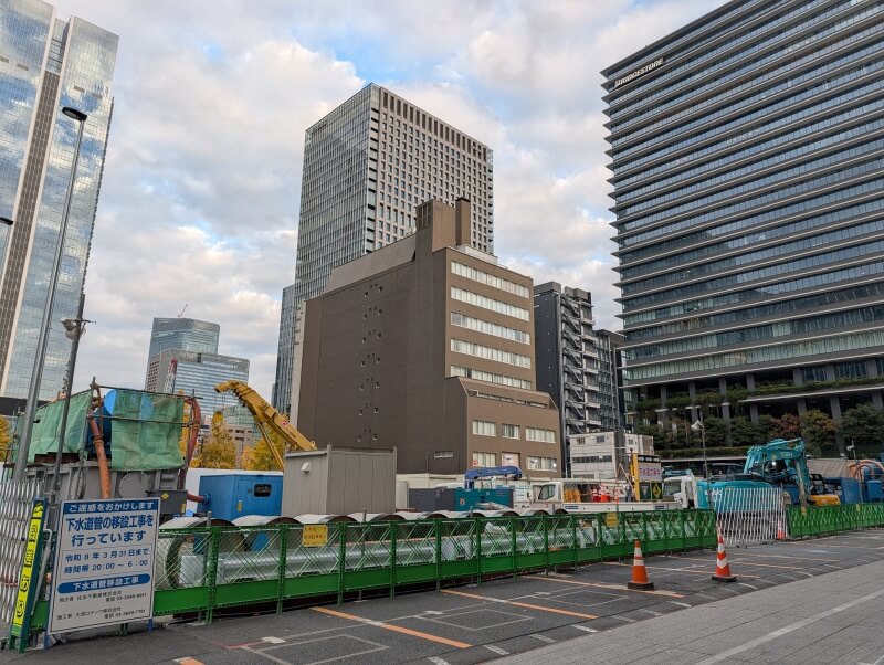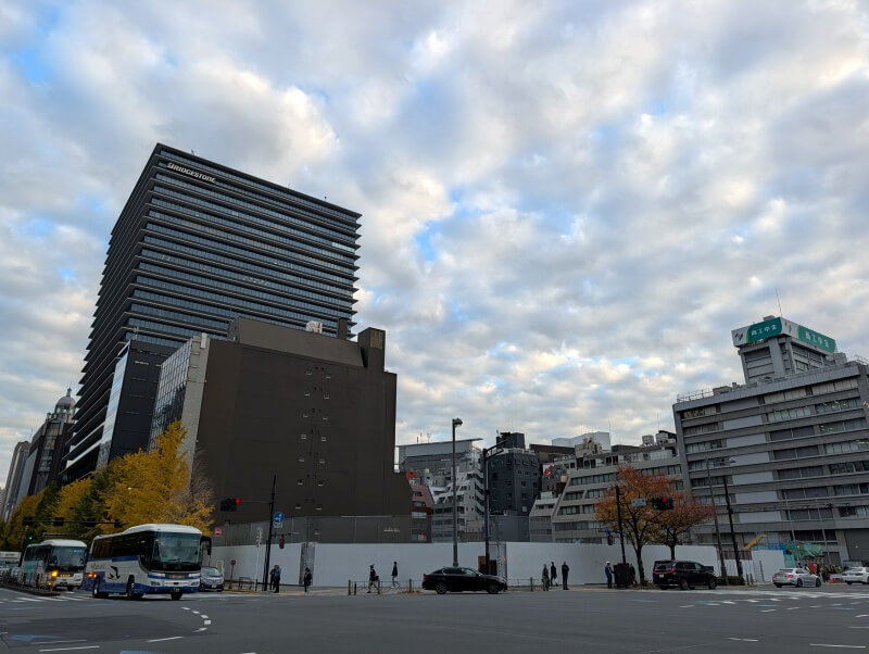 最後に、外堀通りと鍛冶橋通りの交差点から、再開発の敷地を見た様子です。