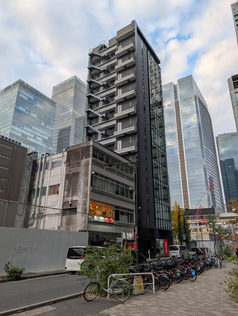 柳通り北側では、再開発の対象となってない建物があります。解体工事のお知らせの図を確認すると、手前の「松岡八重洲ビル」は再開発の対象で、鍛冶橋通り側の「大星八重洲ビル」は再開発の対象から外れそうです。