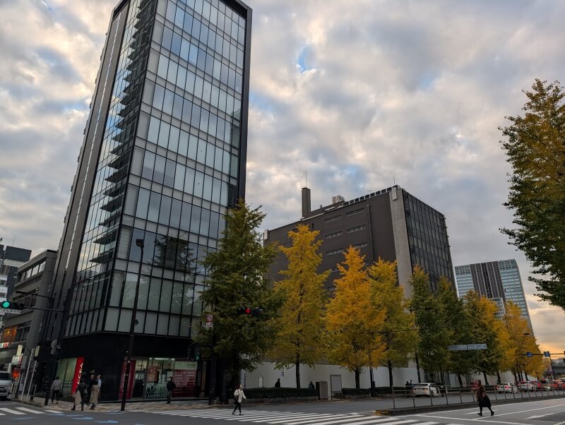 鍛冶橋通りを北東側に移動し、鍛冶橋通りを見た様子です。「大星八重洲ビル」は再開発の対象となりませんが、この辺は「千葉定吉道場跡」があった場所です。坂本龍馬が剣術修行で、この辺に来ていたと思うと、感慨深いです。