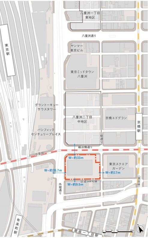 計画地の位置:東京都中央区八重洲二丁目8番の一部、9番