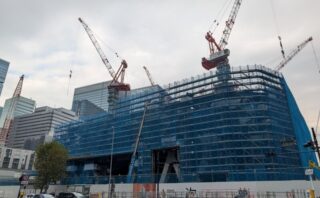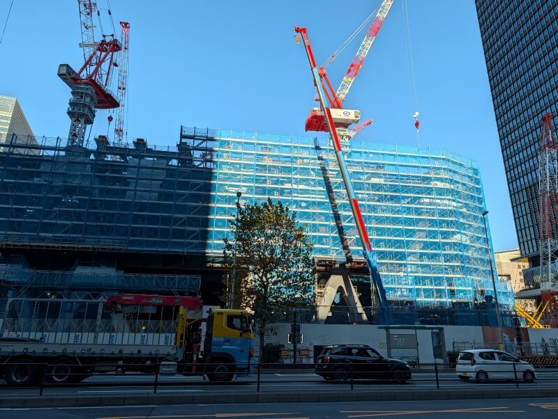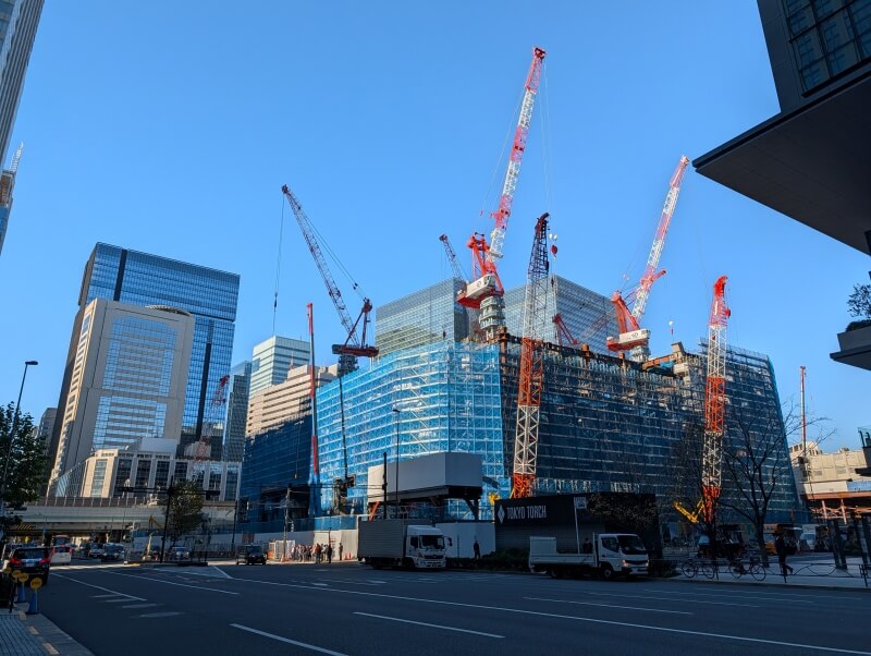 永代通り沿いを東側に進み、施工中の「トーチタワー」を見た様子です。