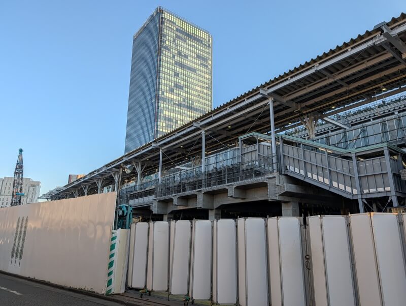 ソラマチタベテラスから降りてきたエスカレーターの先は、工事用の白いフラットパネルが設置されていますが、高架下の開発も進めば、スムーズな導線として設計される事を期待しています。