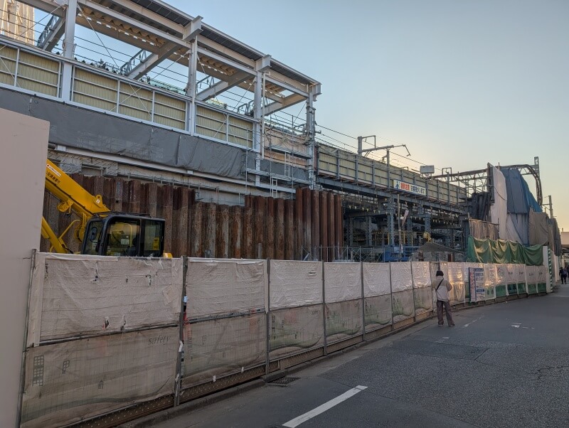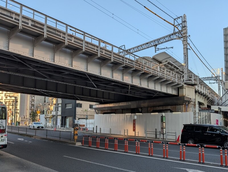 桜橋通りをさらに曳舟駅側に移動した先でも、留置線高架橋工事が行われていました。