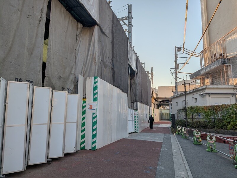 工事関係車両の出入りの脇にある、狭い路地の様子です。ここを移動すると、南北通路側に移動できるのだと思いますが、今回は時間が無くて行きませんでした。狭い路地を見ると、この先に何があるのだろうかと、探求心が強くなってきます。